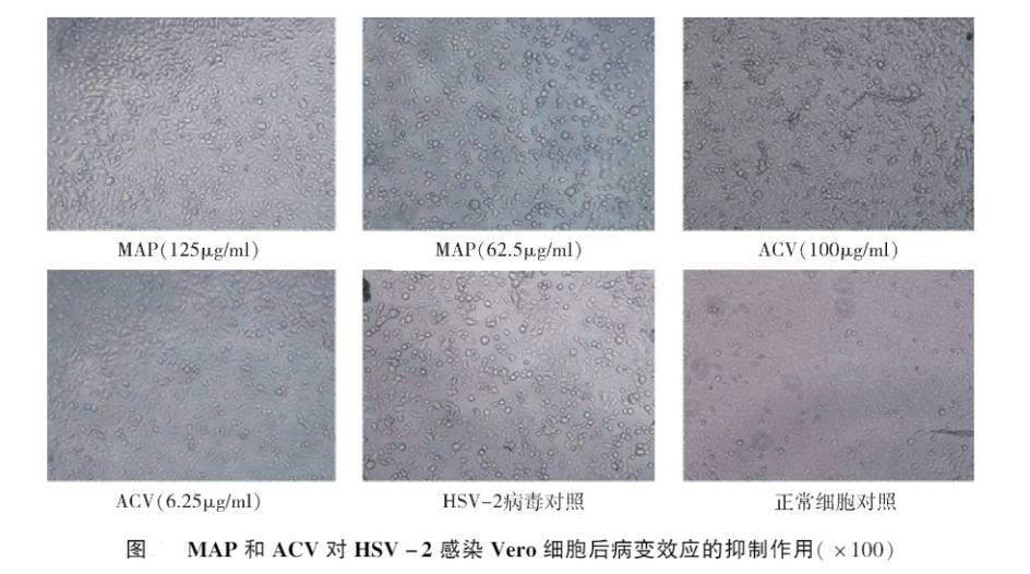研究表明MAP在對抗HSV-2感染方面具有抑制作用,提示其在抗HSV活性進而保護宿主免于感染方面具有一定潛力。但有關(guān)MAP是否能干擾病毒的基因復(fù)制、轉(zhuǎn)錄或蛋白合成還有待進一步研究[6]。