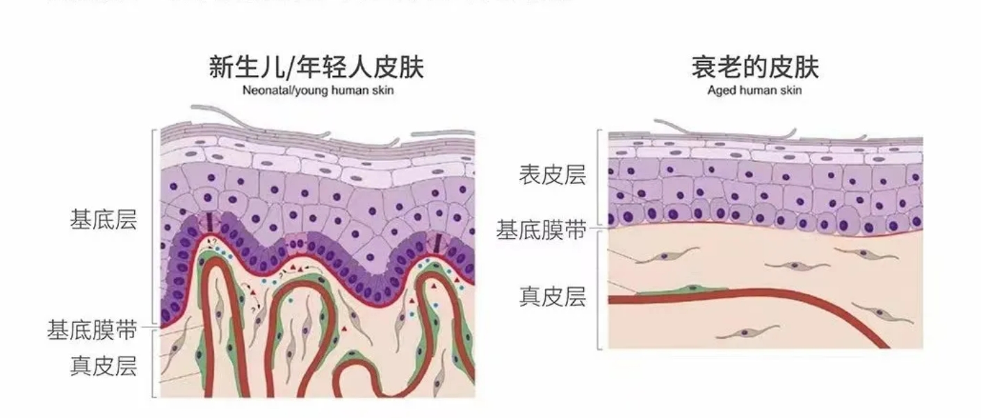 Ⅲ型膠原蛋白主要存在于皮膚、血管和內(nèi)臟器官中,抑制IL-6的分泌,修復(fù)真皮層的同時,在維持皮膚柔韌性和彈性方面也起著重要作用; XVII型膠原蛋白是一種跨膜蛋白,主要存在于基底膜帶中,負(fù)責(zé)將表皮和真皮緊密連接在一起,在表皮層抗衰,增強(qiáng)表皮神經(jīng)末梢保護(hù),是維持皮膚整體結(jié)構(gòu)穩(wěn)定的重要因素。