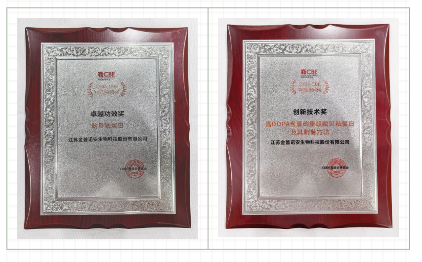 江蘇金普諾安生物科技股份有限公司憑借其明星產(chǎn)品重組貽貝粘蛋白(rMAP)脫穎而出,榮獲創(chuàng)新技術(shù)獎(jiǎng)與卓越功效獎(jiǎng)。